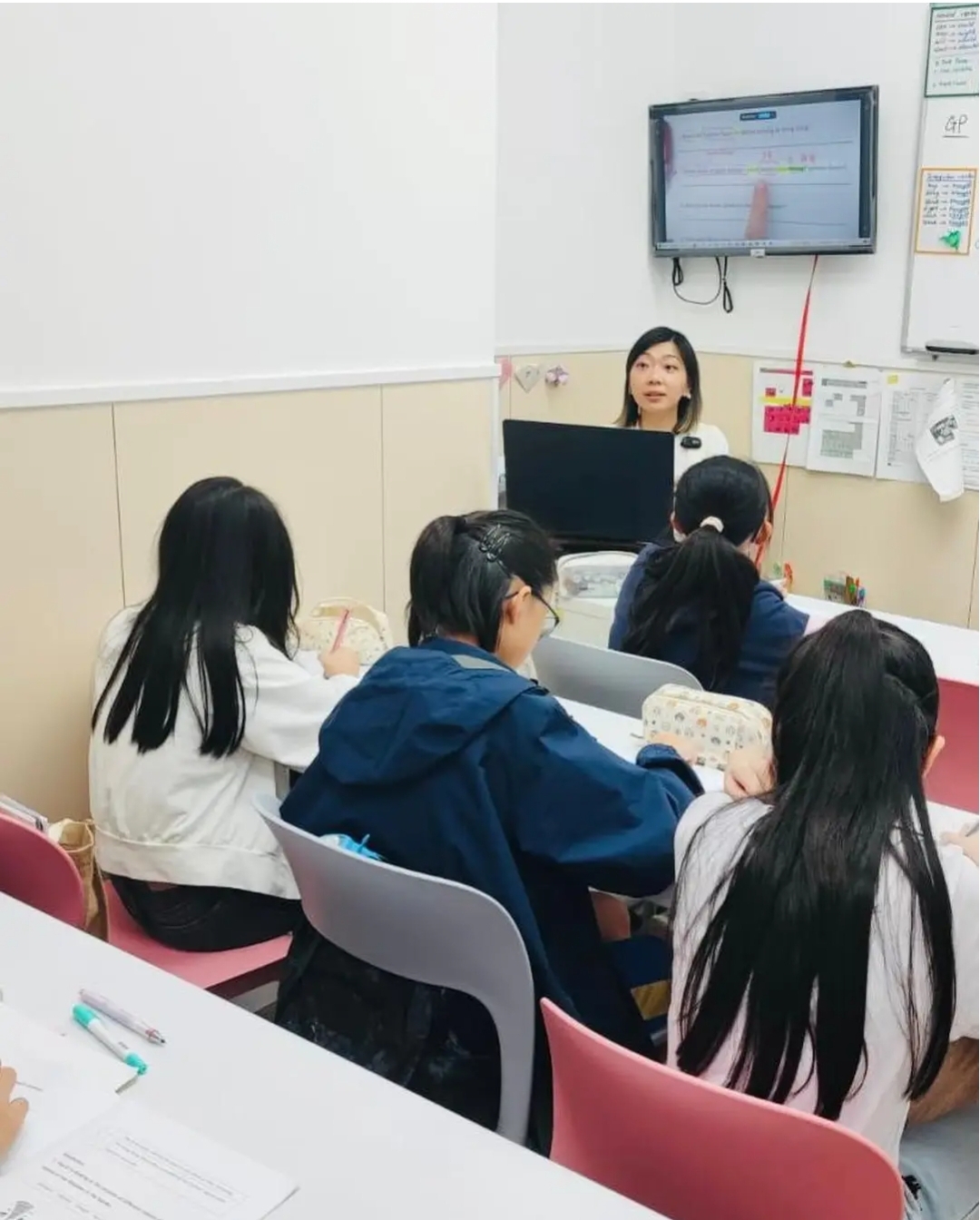 在這裏我學到了很多在學校學不到的東西,之後在英文測驗的成績進步了。非常快樂!